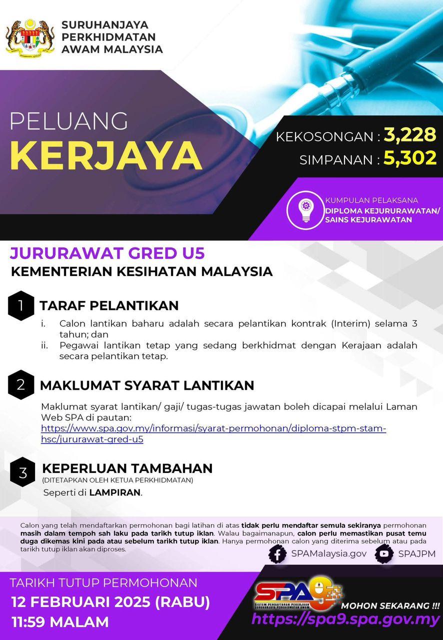 HEBAHAN PENGAMBILAN JURURAWAT GRED U5 DI KEMENTERIAN KESIHATAN MALAYSIA