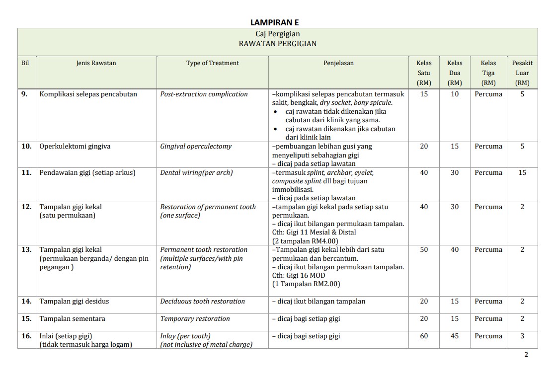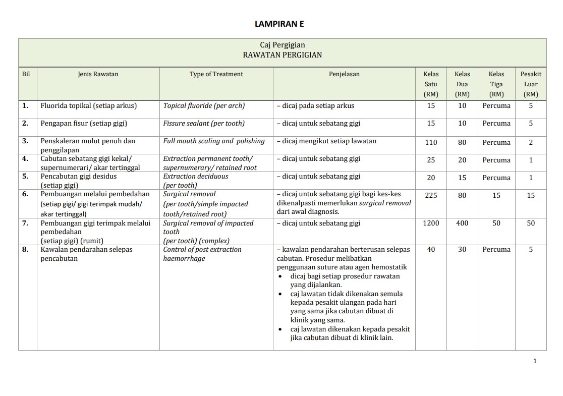Caj Rawatan Pergigian